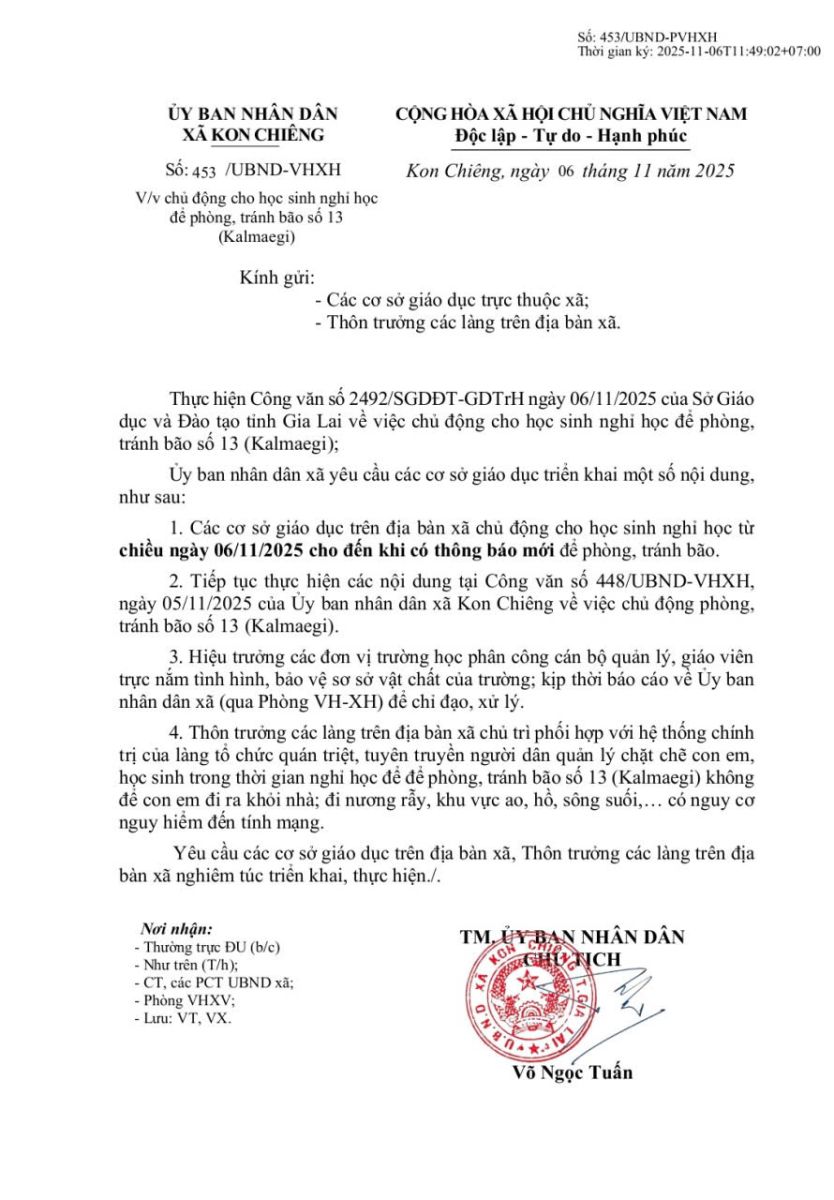 Thứ năm, 06/11/2025 | 14:26 A- A A+ | Vv chủ động cho học sinh nghỉ học để phòng, tránh bão số 13 (Kalmaegi) Chia sẻ Đọc bài Lưu