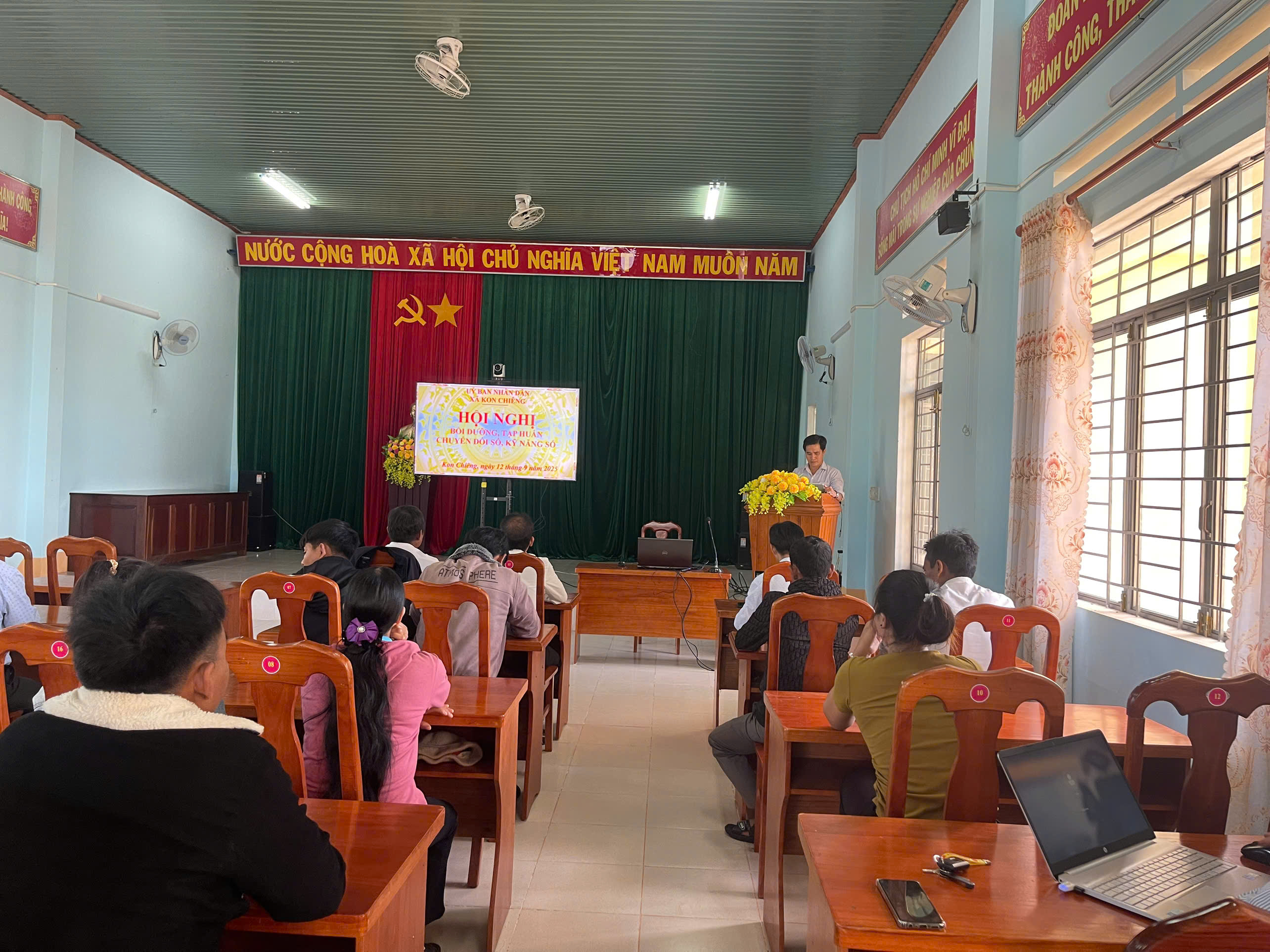 Sáng ngày 12/9/2025, UBND xã Kon Chiêng phối hợp với viên chức Sở khoa học công nghệ tỉnh Gia Lai tổ chức Hội nghị tập huấn chuyển đổi số cho Tổ công nghệ số cộng đồng. Đến dự có lãnh đạo UBND xã; lãnh đạo và chuyên viên các phòng ban của xã, Tổ công nghệ số cộng đồng các làng. Đ/c Võ Đình Huy, Phó chủ tịch UBND xã - Kiêm giám đốc TT phục vụ Hành chính công phụ trách chuyển đổi số dự và chỉ đạo tại lớp tập huấn chuyển đổi số cho Tổ công nghệ số cộng đồng. Chương trình nhằm trang bị kiến thức, kỹ năng cơ bản về công nghệ số, hỗ trợ người dân tiếp cận các dịch vụ công trực tuyến, thương mại điện tử và ứng dụng số trong đời sống.