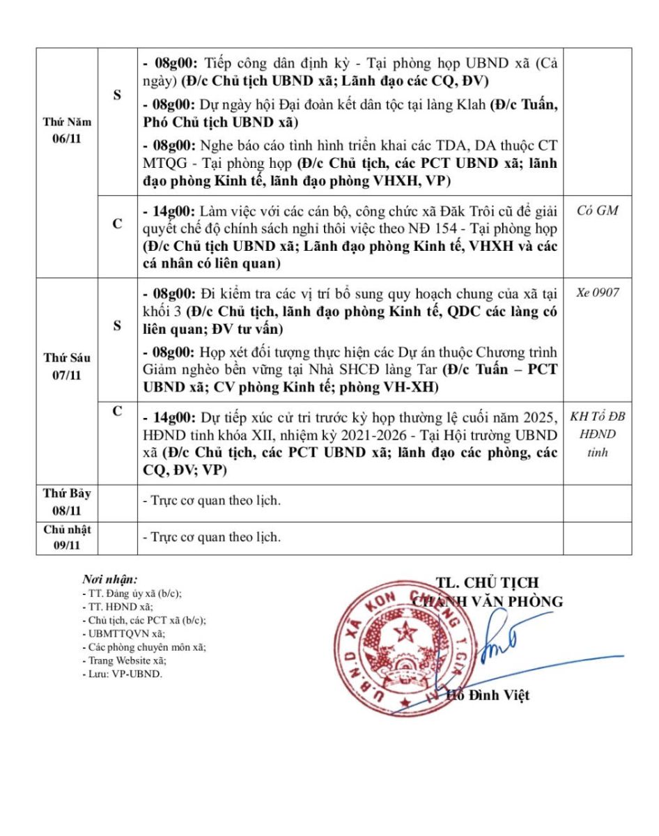 Lịch công tác tuần (từ ngày 03-09/11/2025