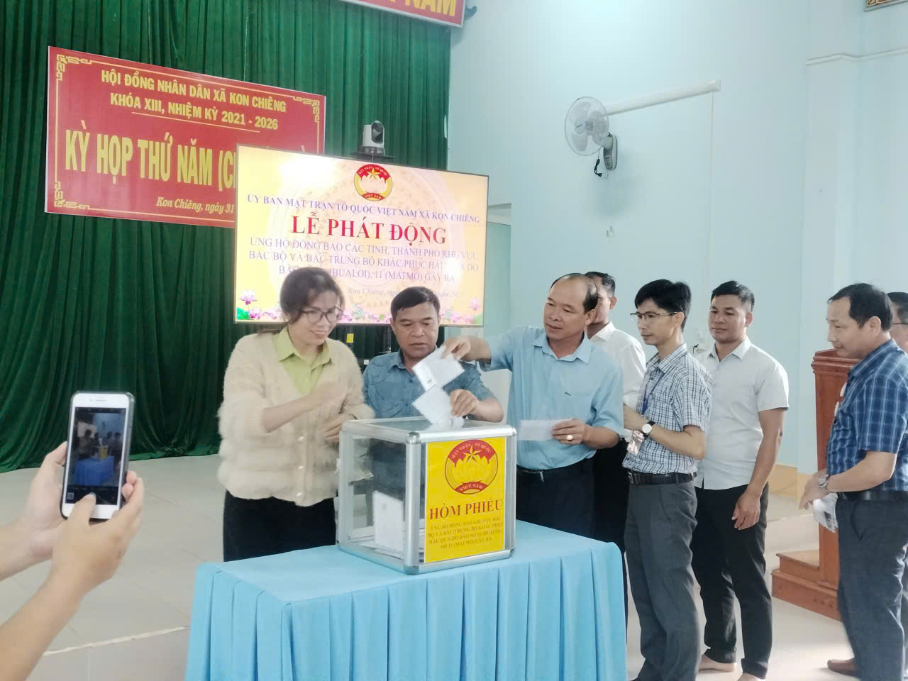 Thực hiện lời kêu gọi của Ủy ban Trung ương Mặt trận Tổ quốc Việt Nam và Ủy ban MTTQ Việt Nam tỉnh Gia Lai về việc ủng hộ đồng bào các tỉnh, thành phố khu vực miền Bắc và miền Trung bị thiệt hại nặng nề do bão số 10, 11 gây ra, sáng ngày 31/10/2025, Ủy ban MTTQ Việt Nam xã Kon Chiêng đã tổ chức Lễ phát động ủng hộ đồng bào vùng bị thiên tai tại Hội trường UBND xã.