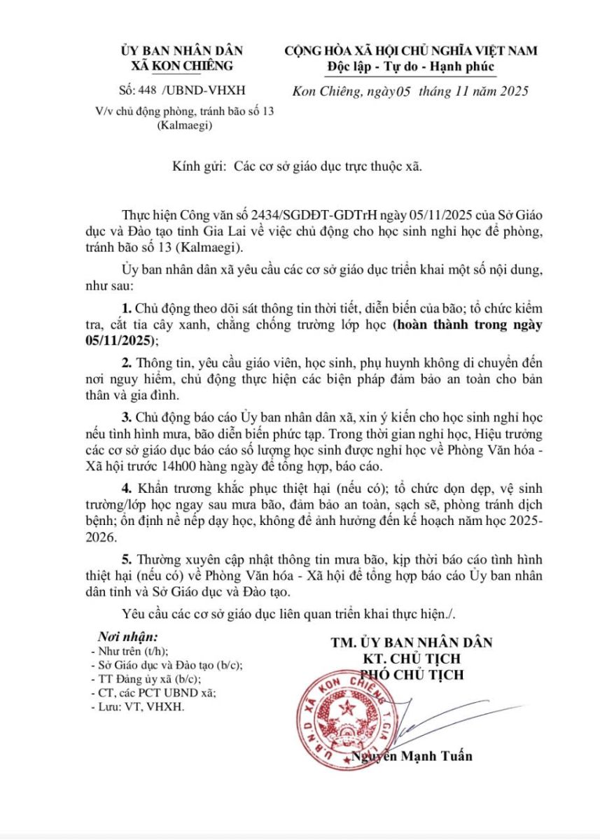 Thứ năm, 06/11/2025 | 08:39 A- A A+ | V/v chủ động phòng, tránh bão số 13 (Kalmaegi) Chia sẻ Đọc bài Lưu